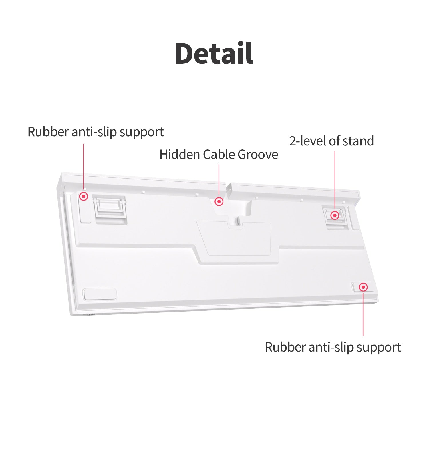 5.RGB الخلفية - 18 وضعًا للإضاءة الخلفية RGB ، و 8 أوضاع إضاءة خلفية أحادية اللون وإضاءة خلفية بألوان كاملة واحدة. ستمنحك هذه الأوضاع مزيدًا من المتعة عند اللعب أو الكتابة في الليل.