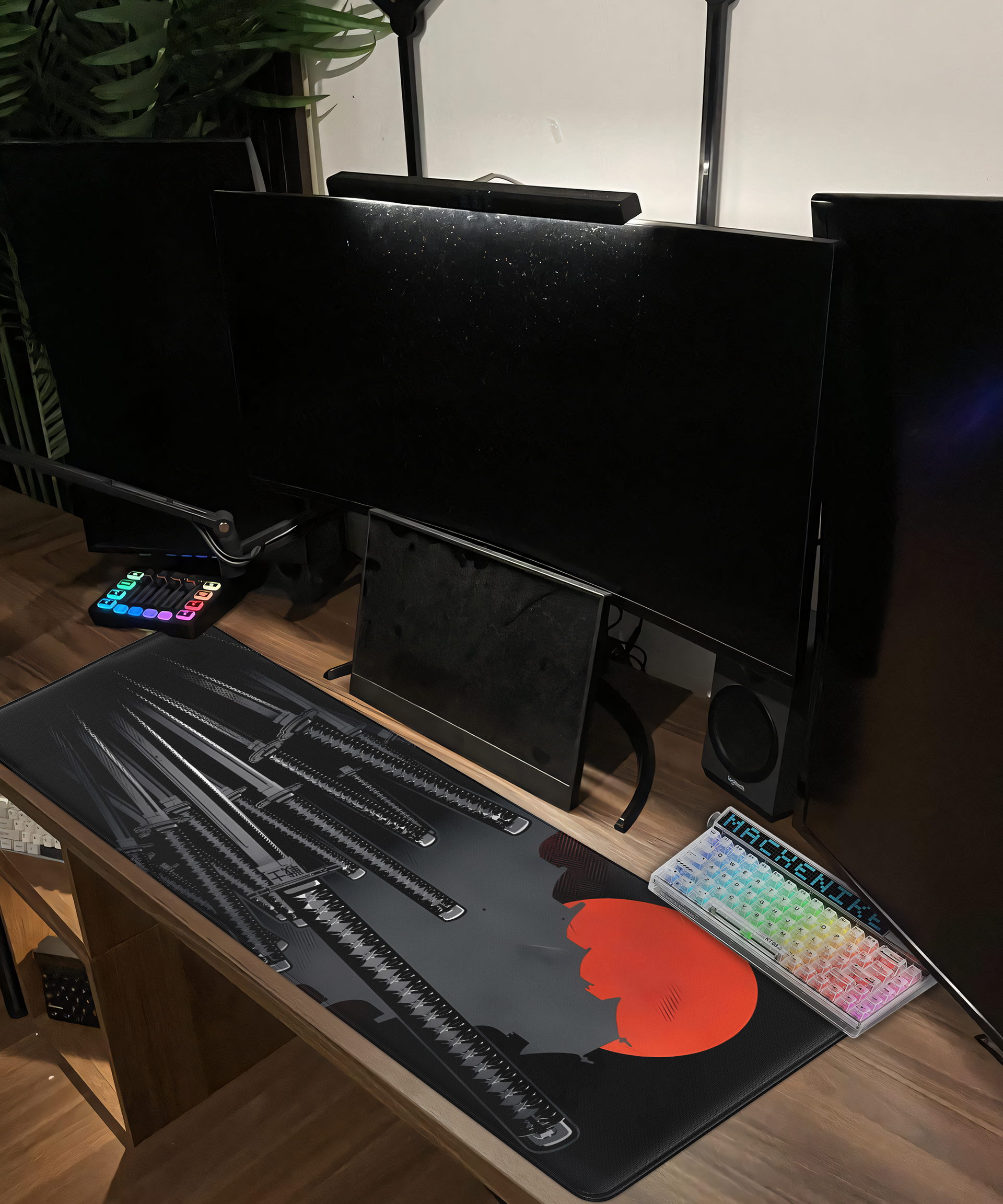 الشاحن اللاسلكي = الشاحن اللاسلكي الموجود على اليسار متصل بلوحة الماوس