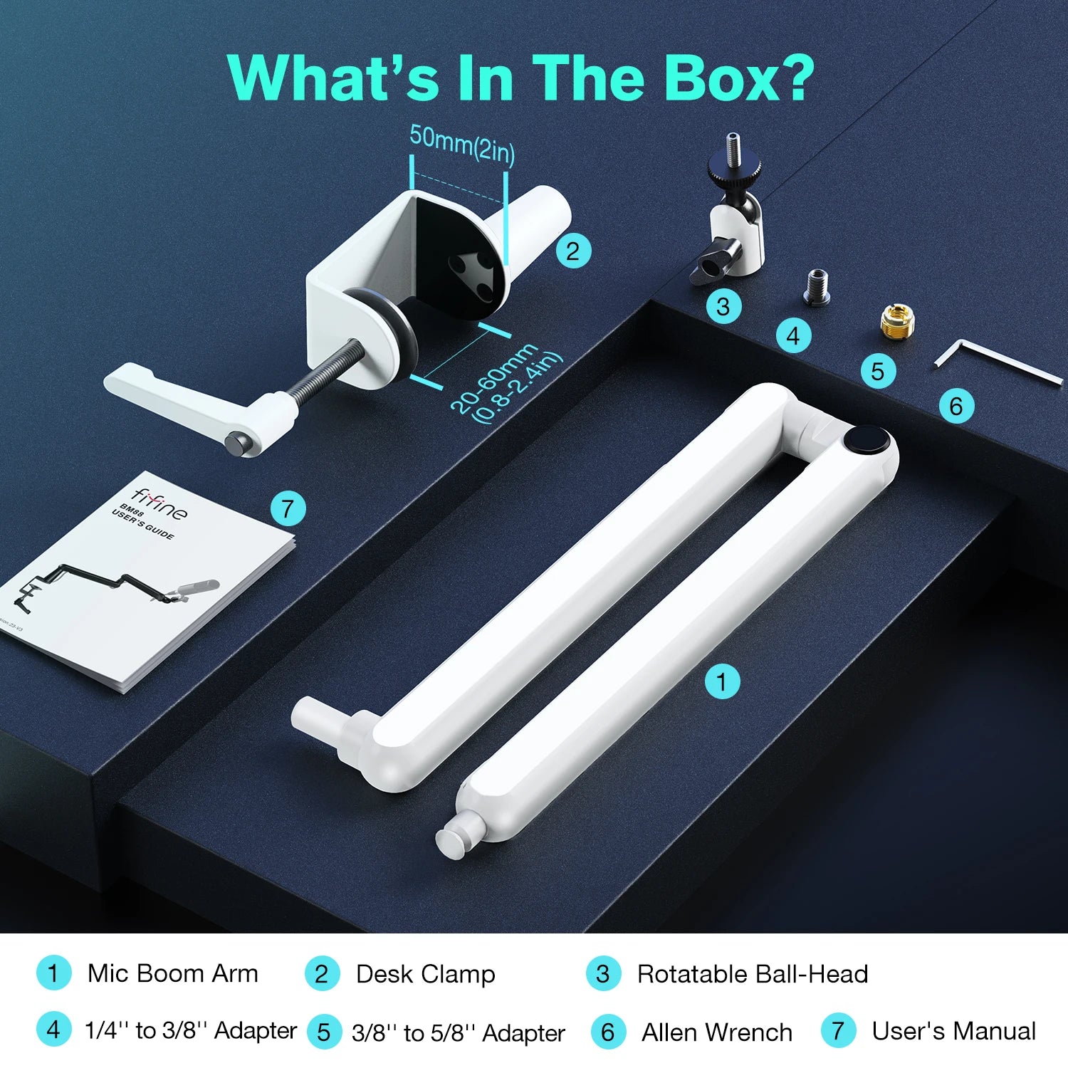 - BM88 FIFINE (White+Black) Low-profile Boom Arm Microphone Stand