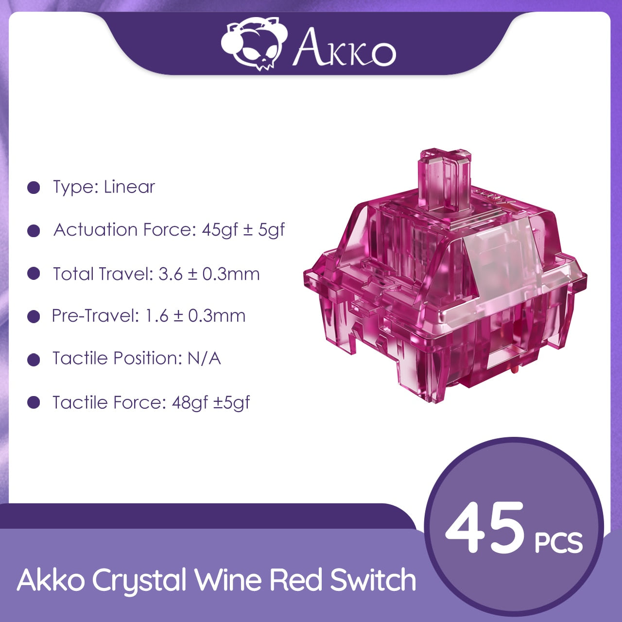Akko CS Crystal Wine Red Switch  (45 pcs) 3 Pin 45gf Linear Switch Full Polycarbonate Structure Fit for MX Mechanical Keyboard (45 pcs)