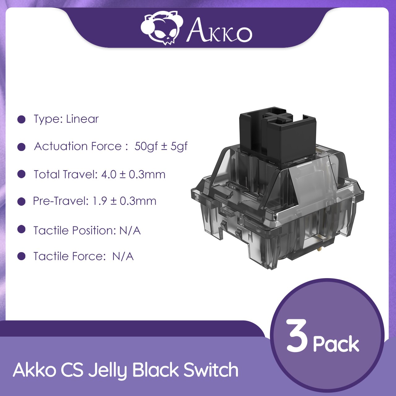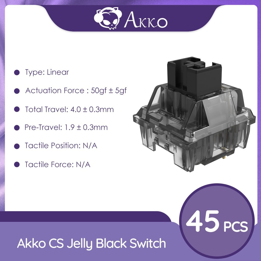 Akko CS Jelly Black Switches 3 Pin 50gf Linear Switch Dustproof Stem Compatible with MX Mechanical Keyboard (45 pcs)