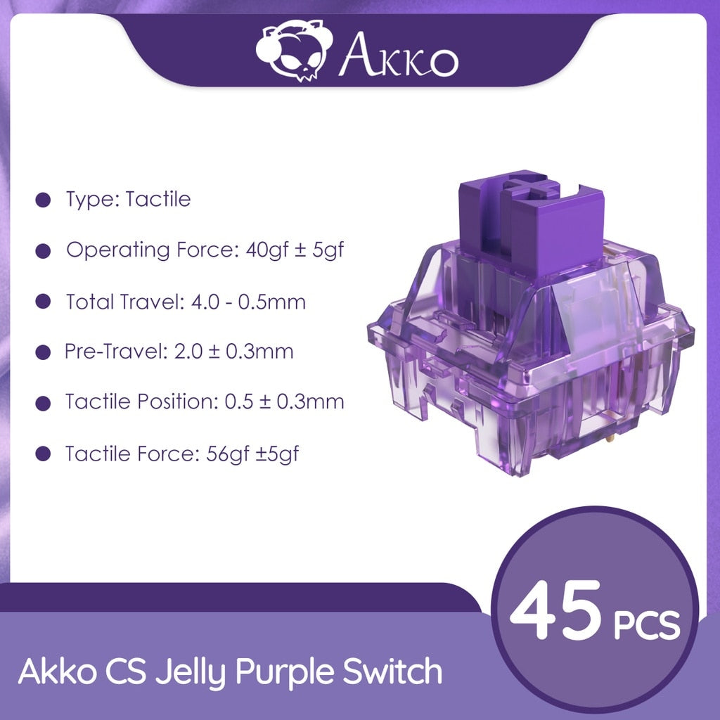 - Akko CS Jelly Purple Switches 3 Pin 40gf Tactile Switch with Dustproof Stem Compatible with MX Mechanical Keyboard (45 pcs)