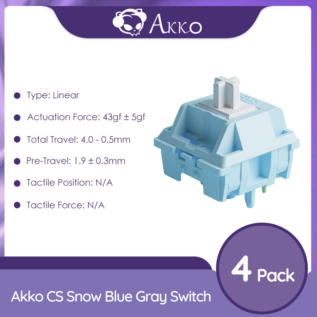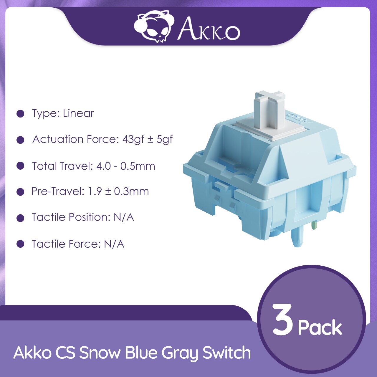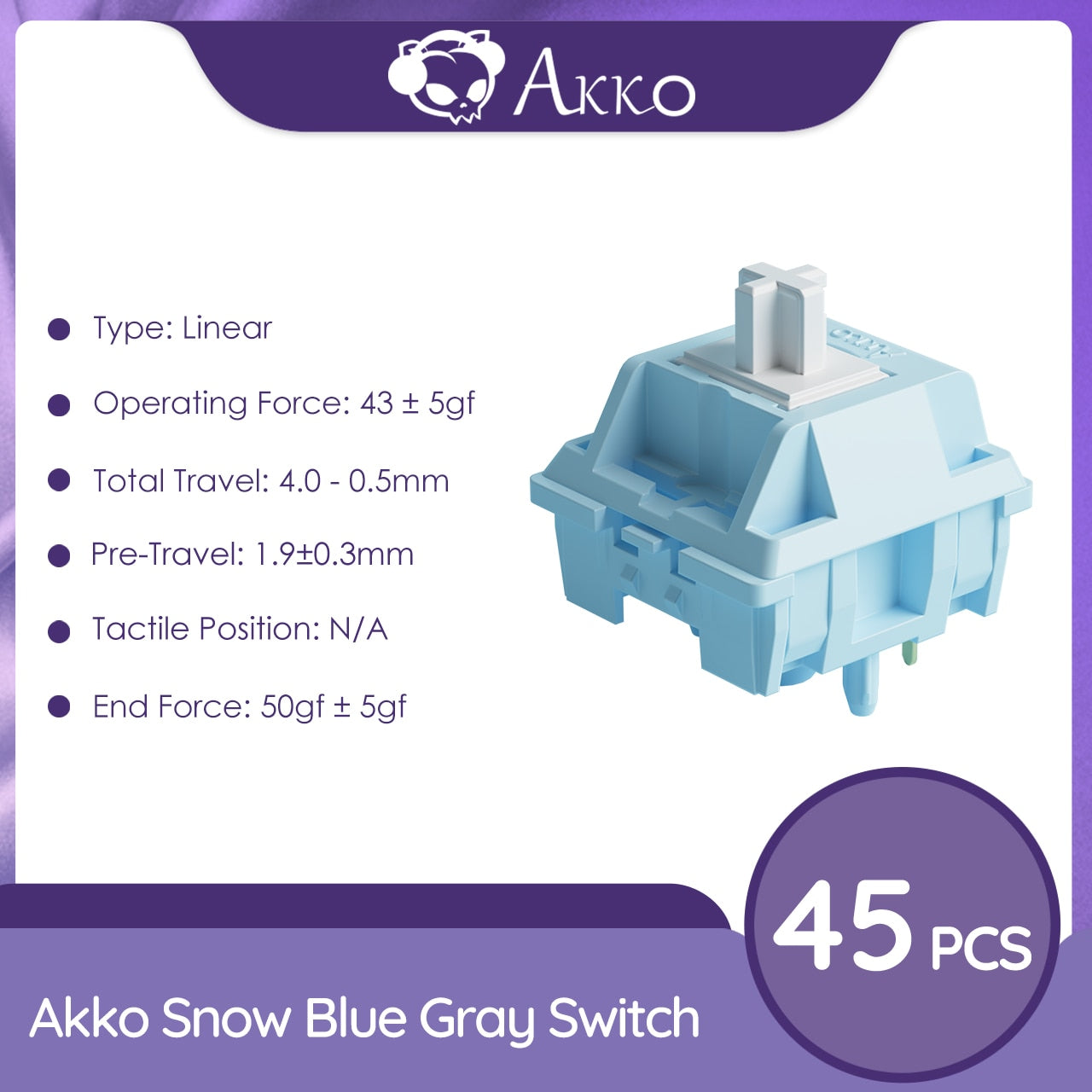 Akko CS Snow Blue Grey Switch 5 Pin 43gf Linear Switch Compatible with MX Mechanical Keyboard (45 pcs)