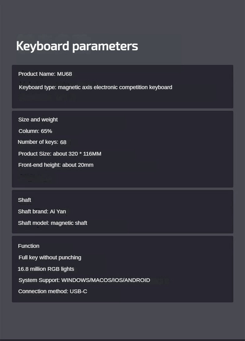 - IYX MU68 Magnetic Keyboard Aluminum E-Sports Switch 68 Keys RGB