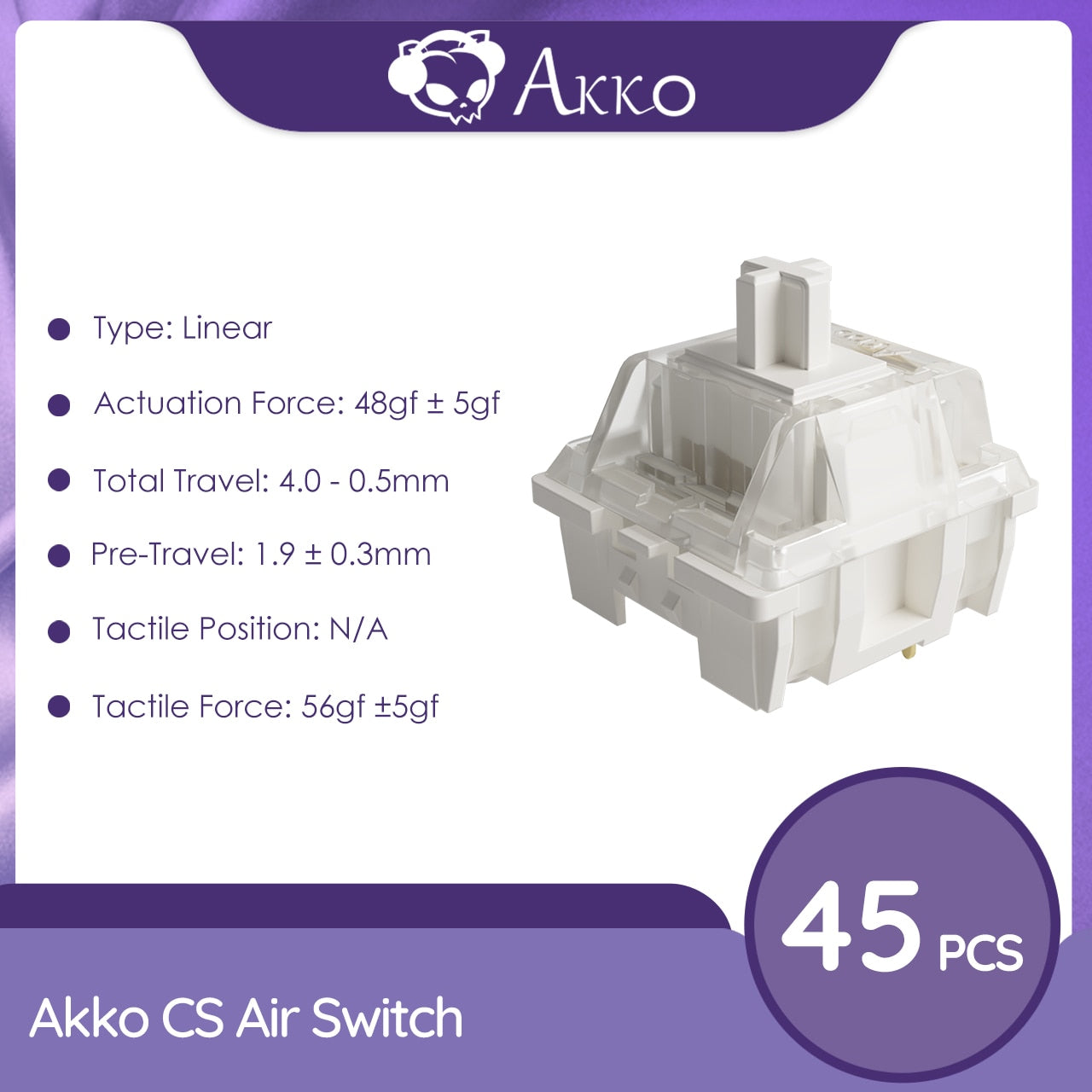 Akko Air Switch 3 Pin 48gf Linear Switch Compatible with MX Mechanical Keyboard (45 pcs)