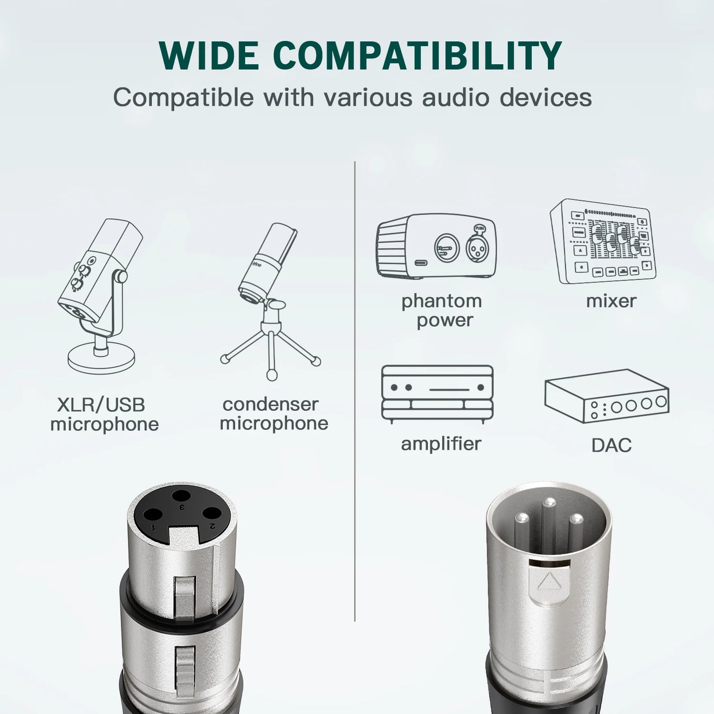 This Balanced microphone XLR cable is compatible with a wide range of microphones, audio interfaces, mixers, and other audio equipment, offering versatile connectivity options.