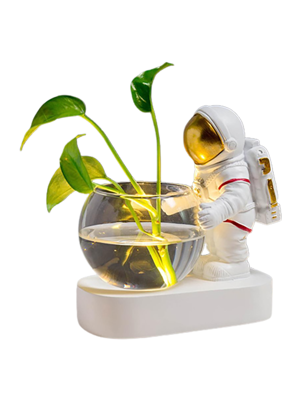 Space astronauts with LED lights and glass hydroponic vases. It is perfect for displaying cute plants on desks, counters or shelves. It can be beautifully decorated anywhere in the home, garden, bathroom, kitchen or living room. Bring green into your life!