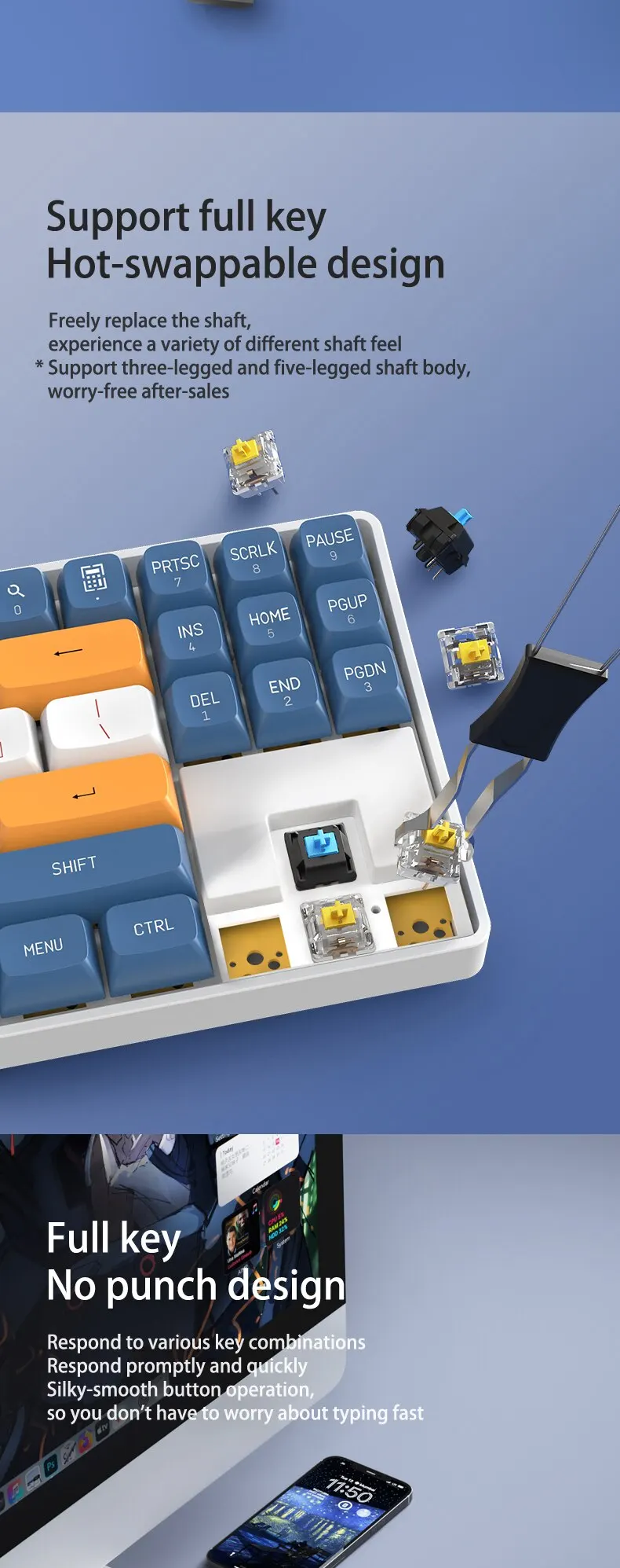 9. Support full-key hot-swappable design. The three-legged hot-swappable shaft seat allows you to freely replace the shaft body and experience a variety of different handles.