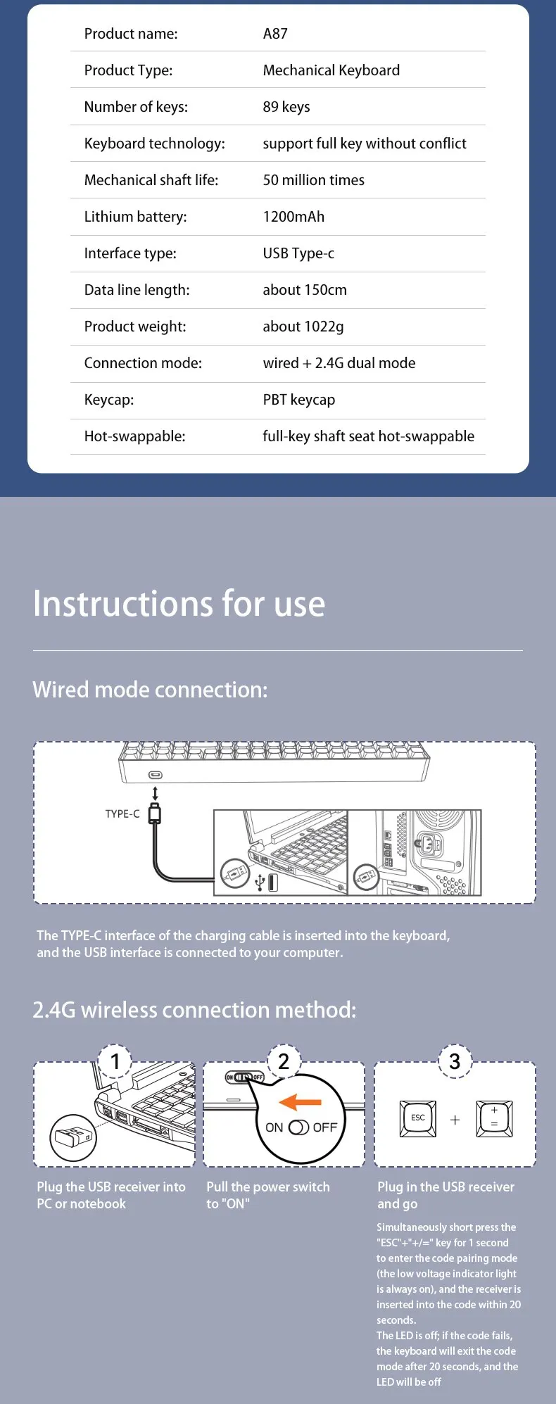 7. Layout: 89 keys, compact layout design, greatly saving the use of space.