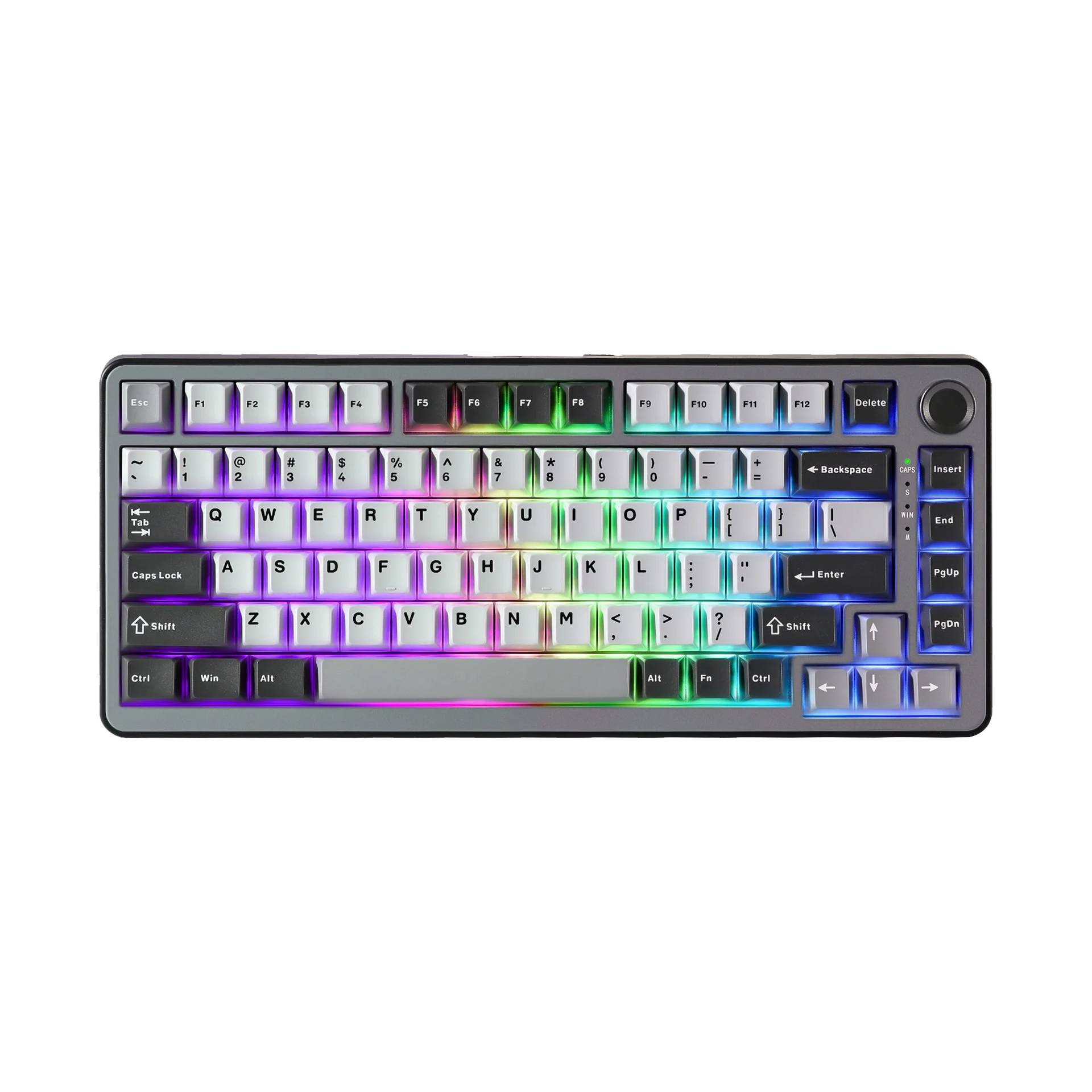 The 75% mechanical keyboard combined with features like N-key rollover and a control knob, ensures a compact yet highly functional design suitable for various applications from gaming to professional use. It features a gasket mount structure and 4-layer sound padding, reducing noise and providing a solid, creamy-sounding keyboard experience. Enjoy 16.8 million RGB backlight effects with extra shine-through transparent keycaps for WASD. South-facing LEDs ensure superior shine-through capabilities for an immersive experience.