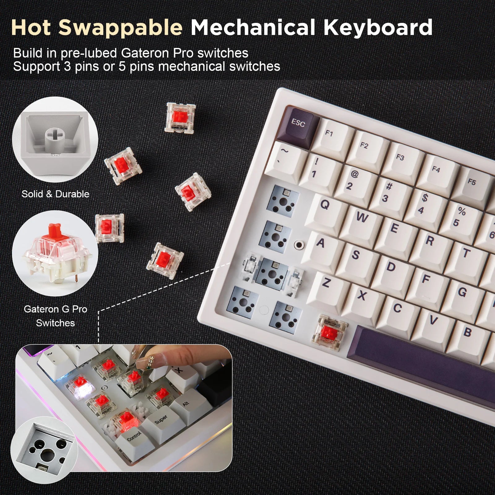 【75% 84 Keys Gasket Mechanical Keyboard with Gateron G Pro Switches】