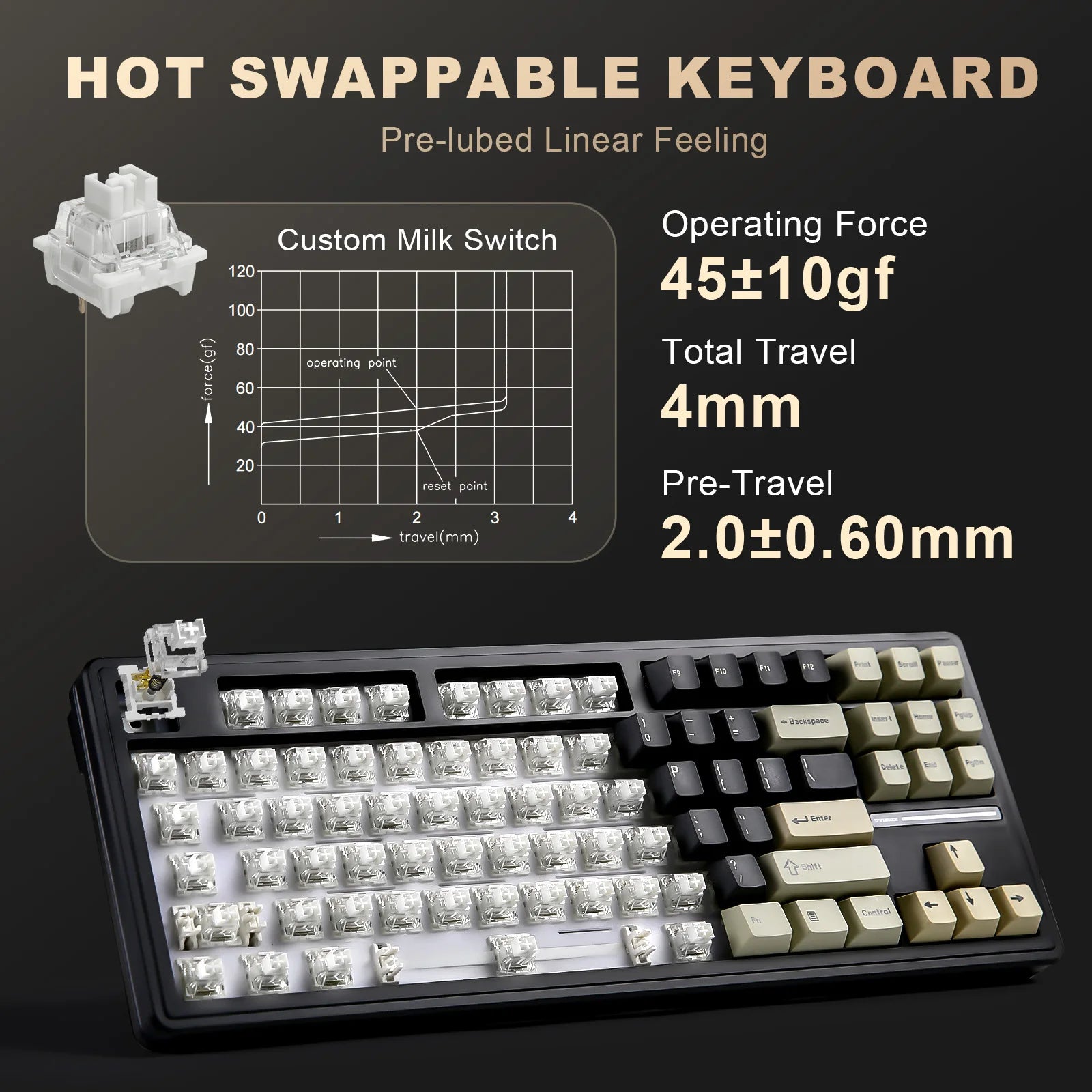 As a customizable mechanical keyboard, YUNZII YZ87 builds in a full key hot swap PCB that supports both 3 or 5-pin mechanical switches. It opens a DIY world for personalizing your keystroke feel and sound. Its PCB and sockets are so solid to freely change the keycaps and switches at your preference with better optimized resilience and stability. YZ87 is equipped with pre-lubed linear switches, for esports athletes' competition-level performance, speed, and precision.