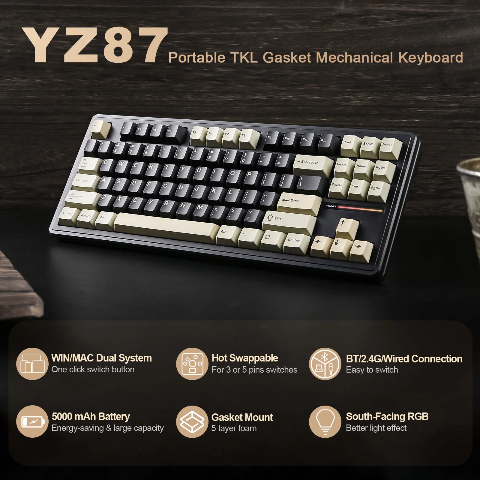 Ultra-portable compact ten-keyless design frees up table space for mouse movement. YZ87 features a gasket structure, with five layers of filling silencer and PORON gaskets filling the gap between the PCB, positioning plate, and mechanical switches, the 87-key TKL mechanical keyboard is flexible and firm by reducing hollow sound and fatigue, It's the ideal choice for a satisfying, low-noise typing experience, whether in an office or gaming environment.