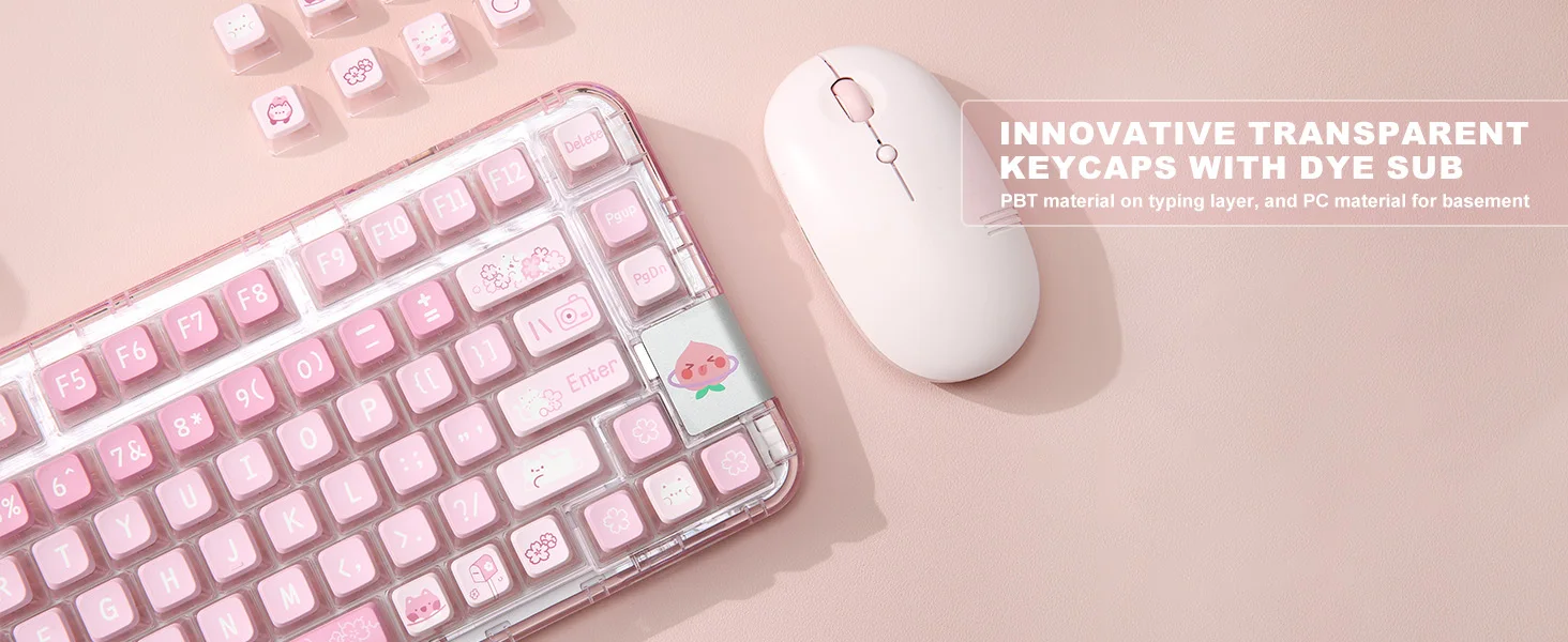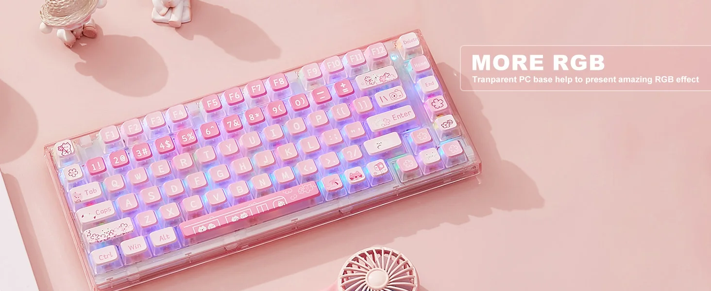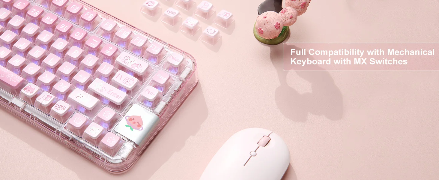 Designed with KSA profile, this custom keyboard keycaps designed into 2 layers as pudding. Both cute pattern on the top and transparent base help to present amazing RGB effect, and make your keyboard typing sound better