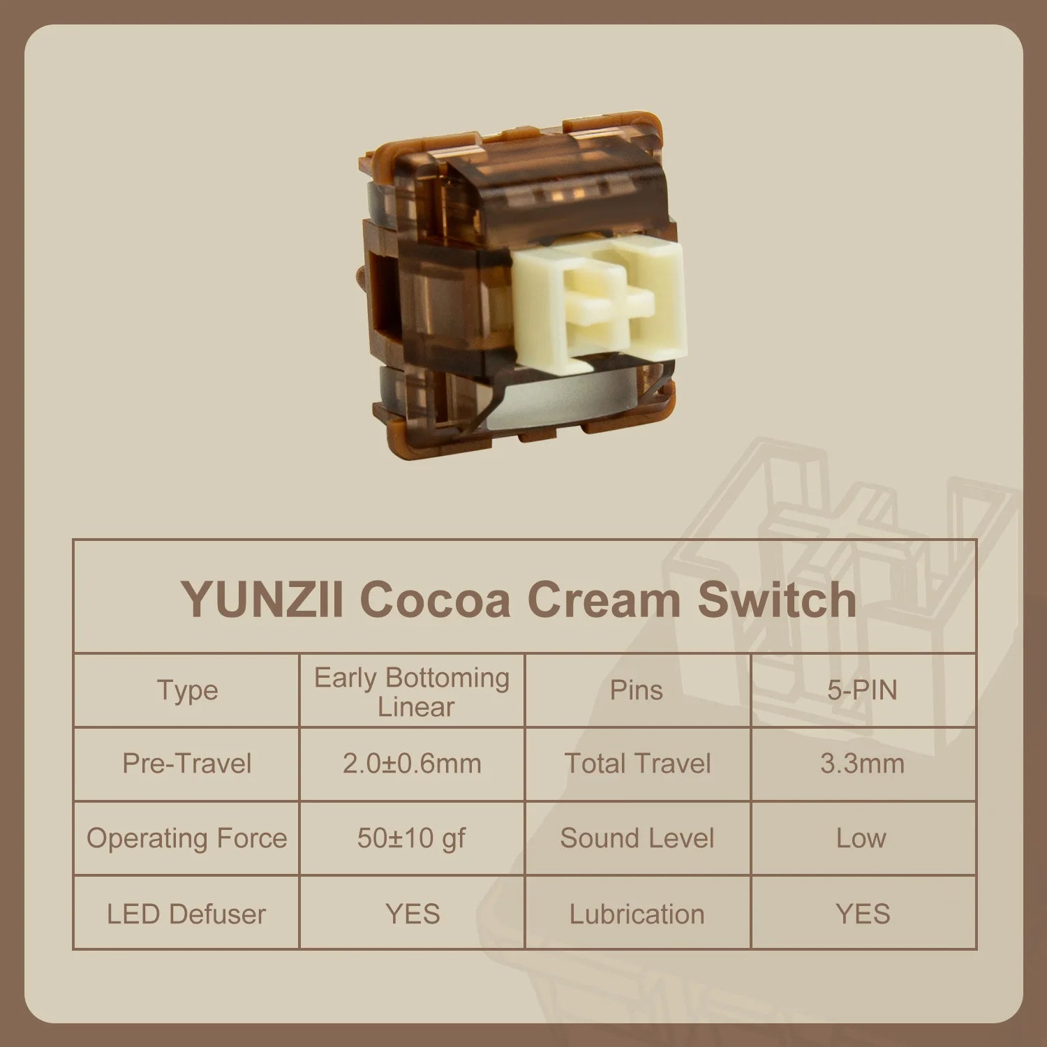 - YUNZII Cocoa Cream Pre-Lubed 5-Pin Early Bottoming Linear Switch