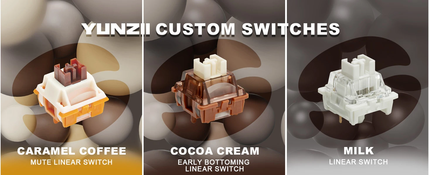 YUNZII milk switches are designed for customers who mind the loud voice. Combining a comfortable feel with less typing noise, linear series switches will be your good partners.