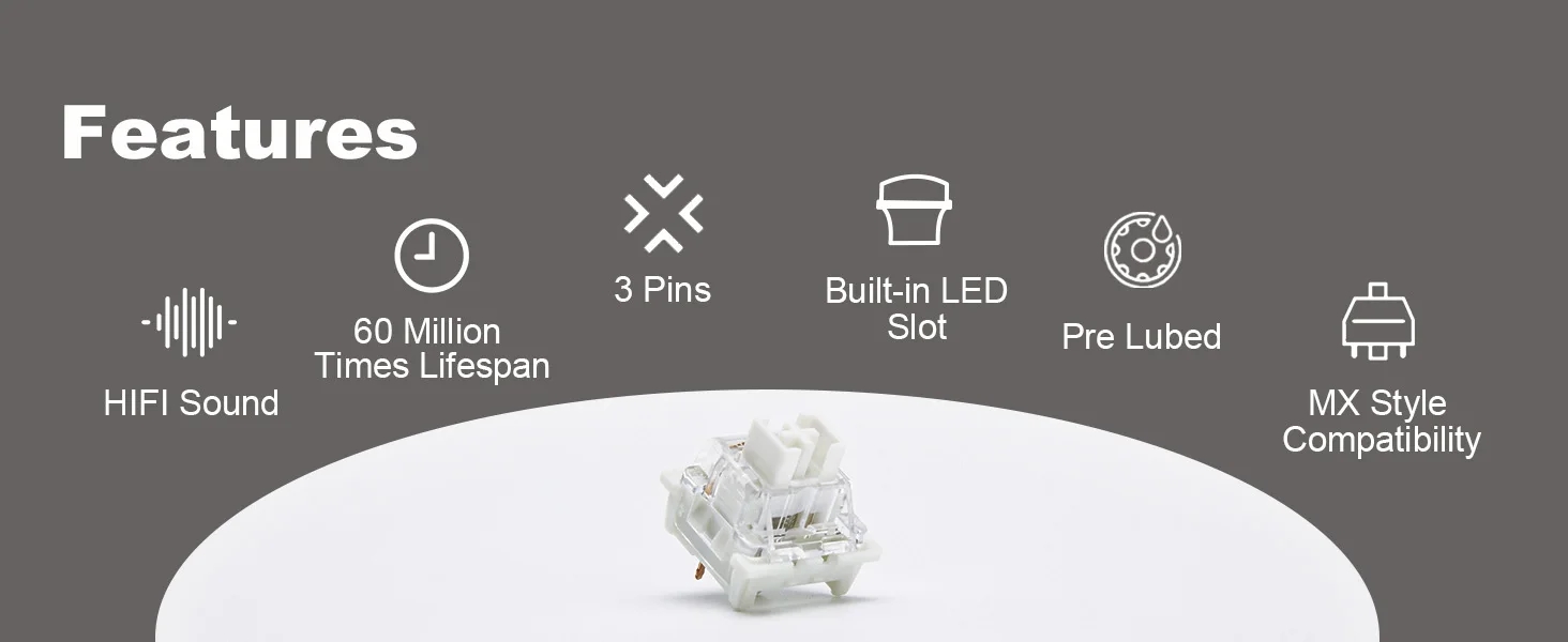 The milk switches are designed with a general MX structure so that they can fit most keycap sets. The switches are crafted with a harder 0.3-0.33mm chunky three-ply pin for a more reliable connection and longer lifespan, fitting in different mechanical keyboards. Based on the strong compatibility, you can easily change the switch and customize your mechanical keyboard.