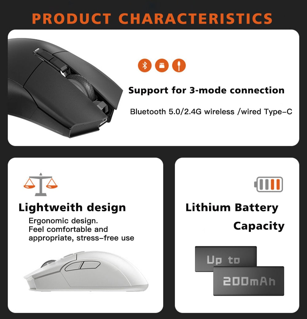 Wired and 2.4G modes: WinXP/Win7/Win8/Win10/Win11/Macos